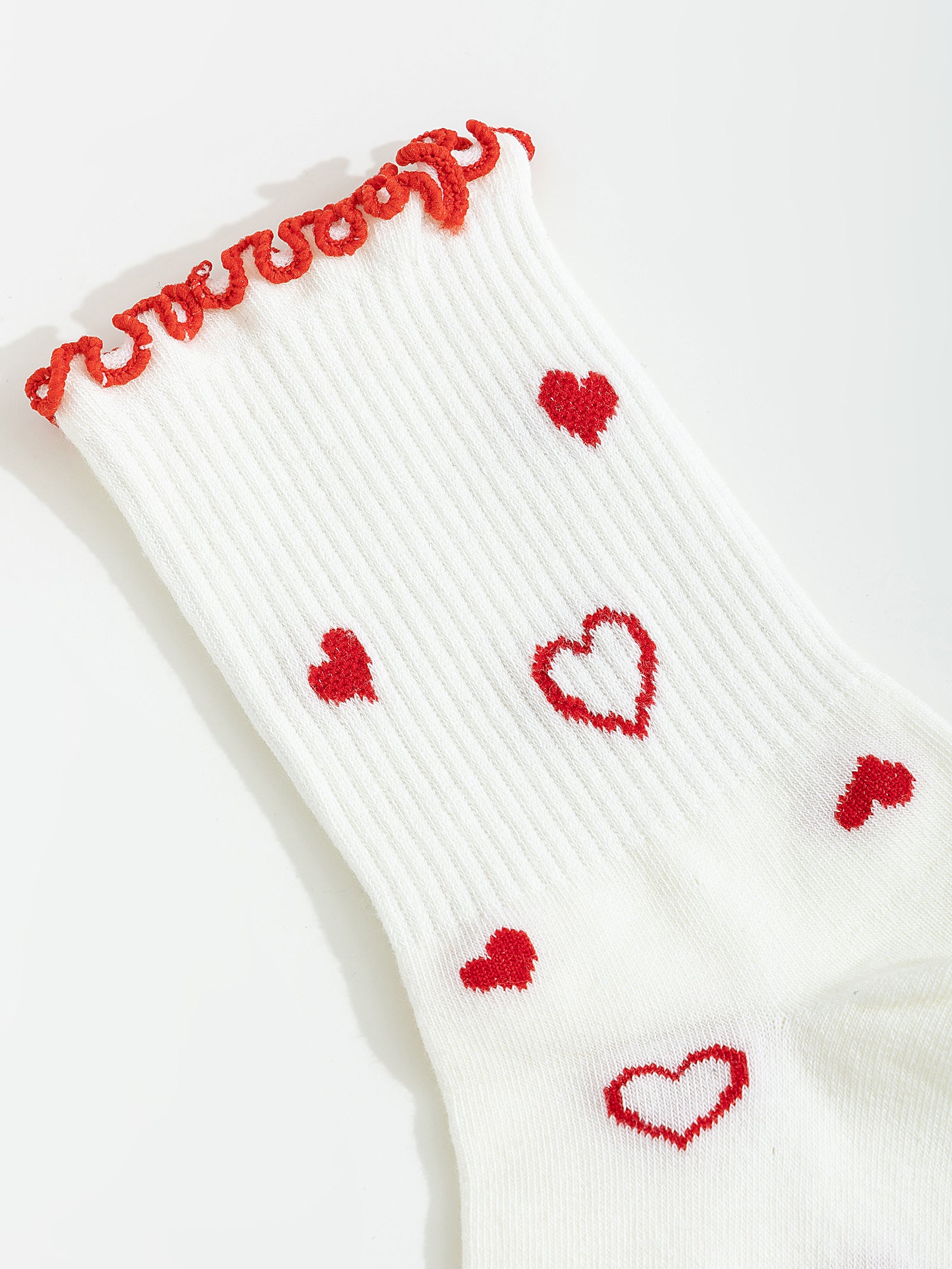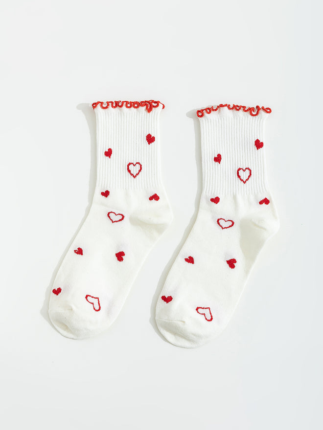 גרביים מלמלה לבנות עם לבבות אדומים.