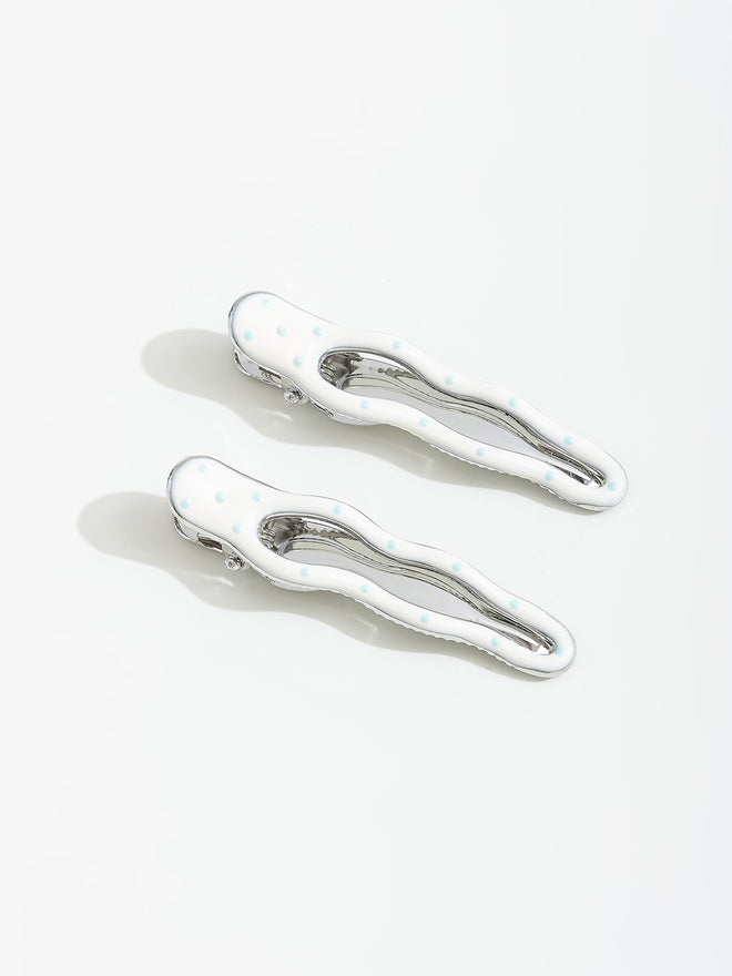 זוג סיכות לשיער מנוקדות בצבע לבן.