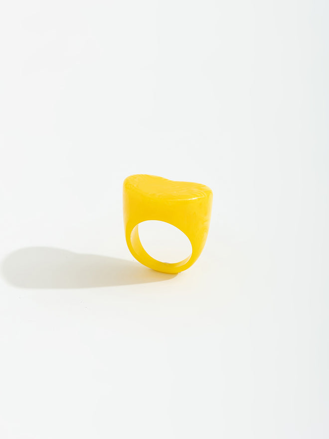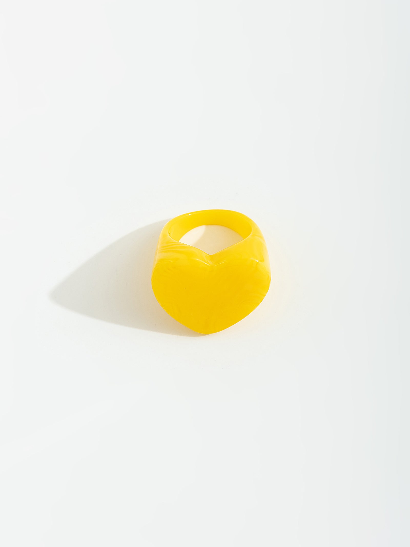 טבעת מסיבית בצורת לב מפלסטיק צהוב.