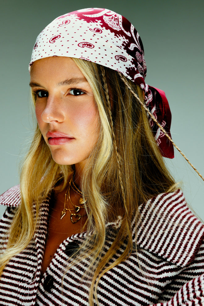מטפחת בנדנה אדומה עם דוגמת פייזלי.