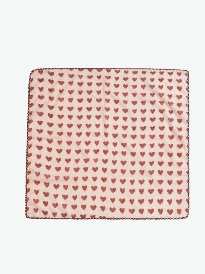 מטפחת בנדנה וכחולה עם דוגמה לבבות.