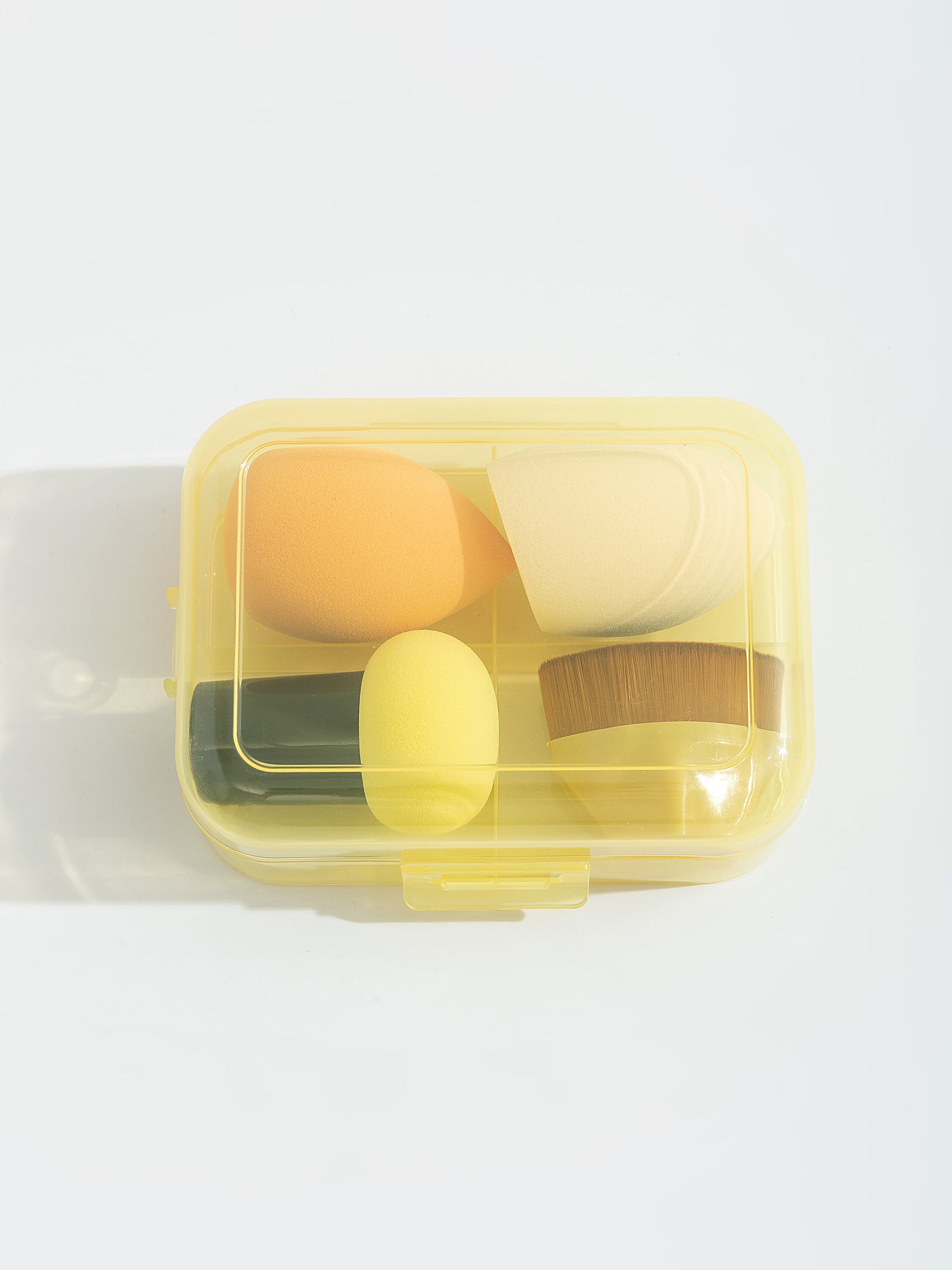 סט אביזרים לאיפור הכולל מברשת וספוגים למריחת איפור.