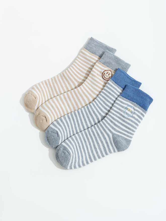 סט של שתי זוגות גרביים בצבעים שונים עם פסים.