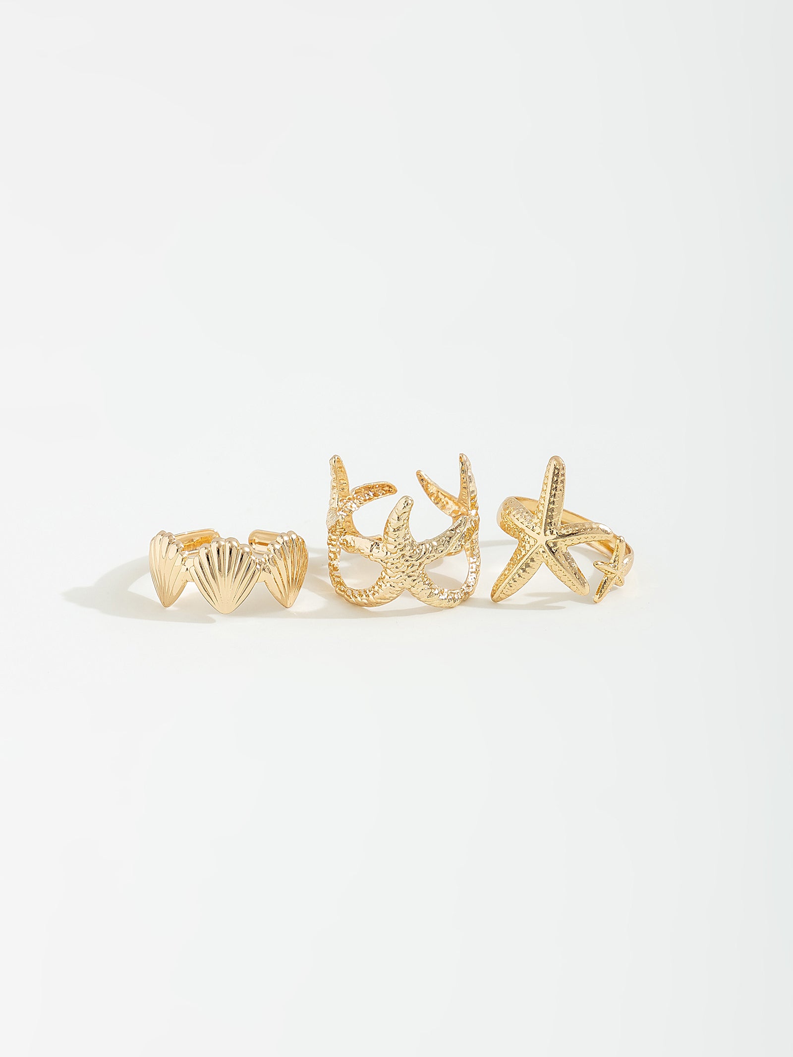 טבעות פתוחות בסגנון ימי בצורת כוכבי ים וצדפות