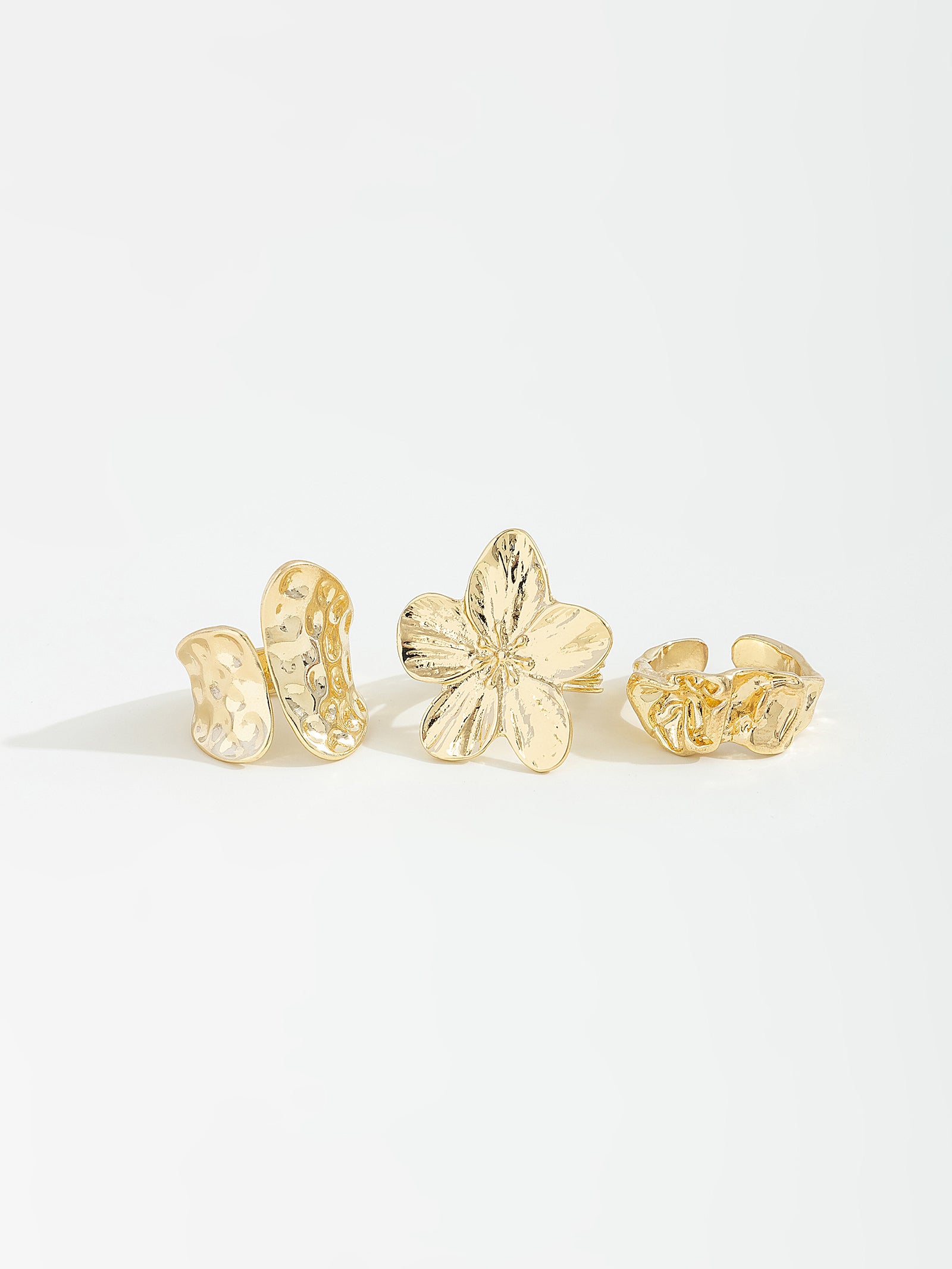 סט של 3 טבעות בצורת פרחים בעיצוב ייחודי.