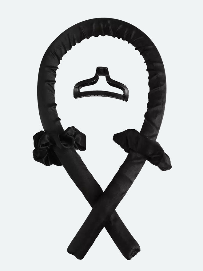 סט לעיצוב השיער ללא חום. הכולל שתי גומיות, קליפס ואביזר להענקת מראה שיער גלי.