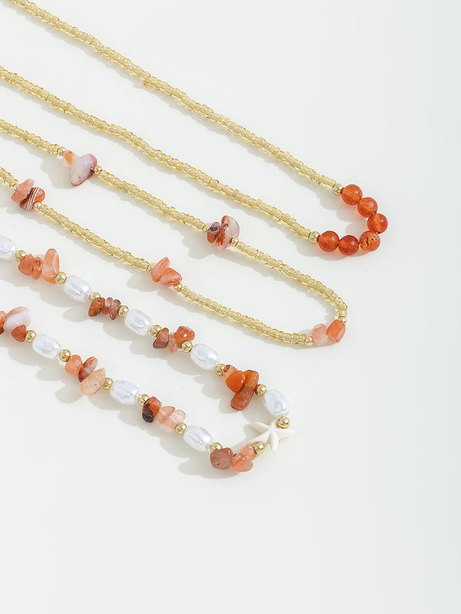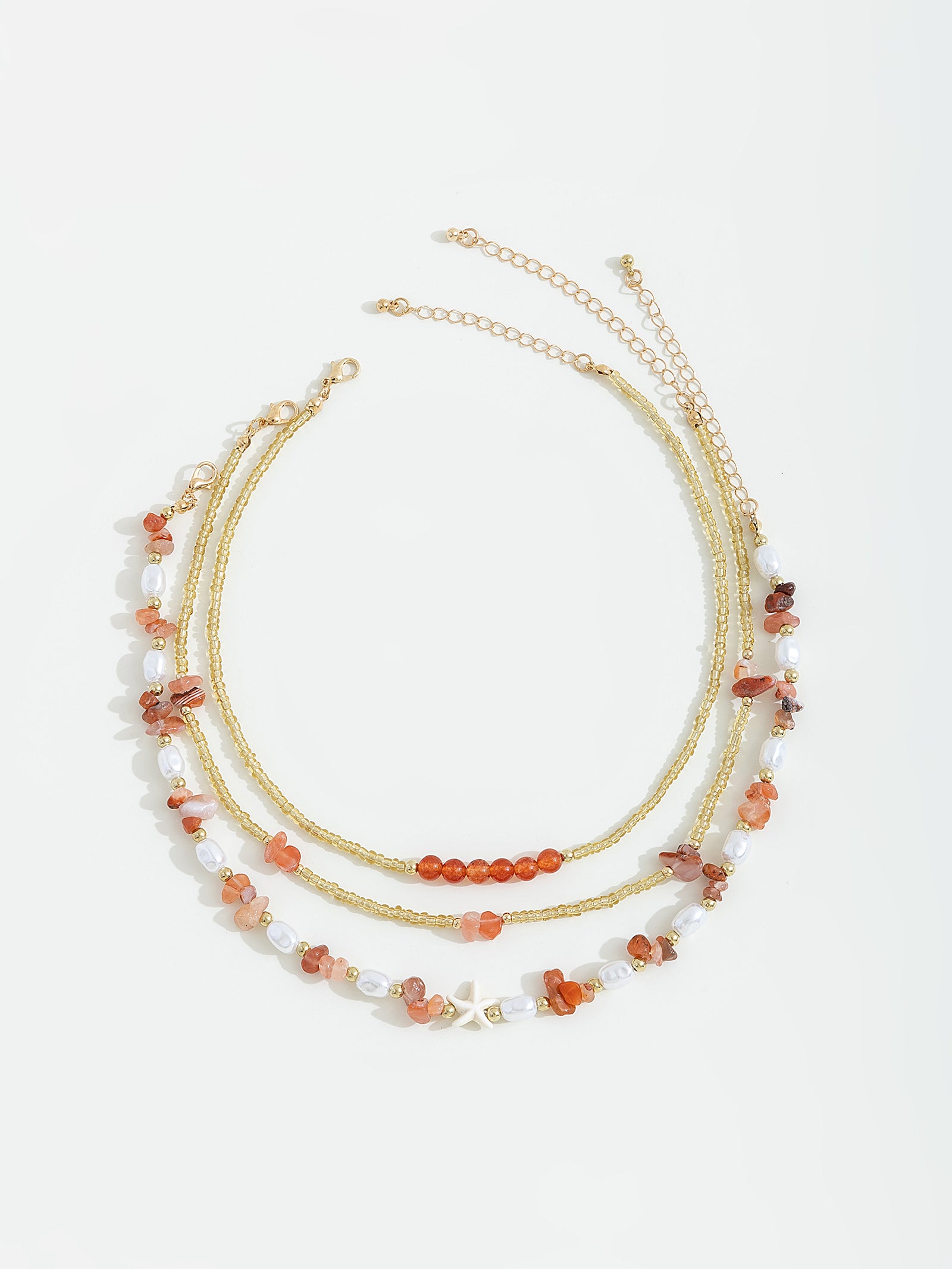סט שרשראות מחרוזים בשילוב אבנים צבעוניות