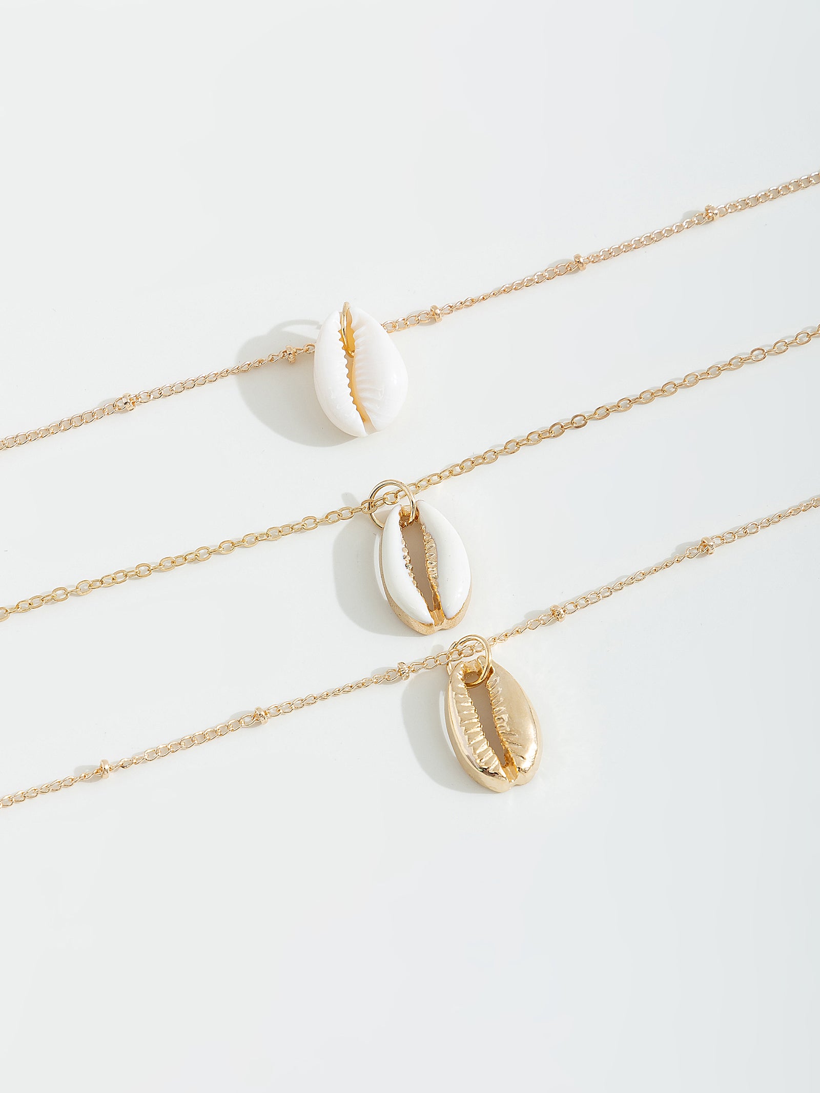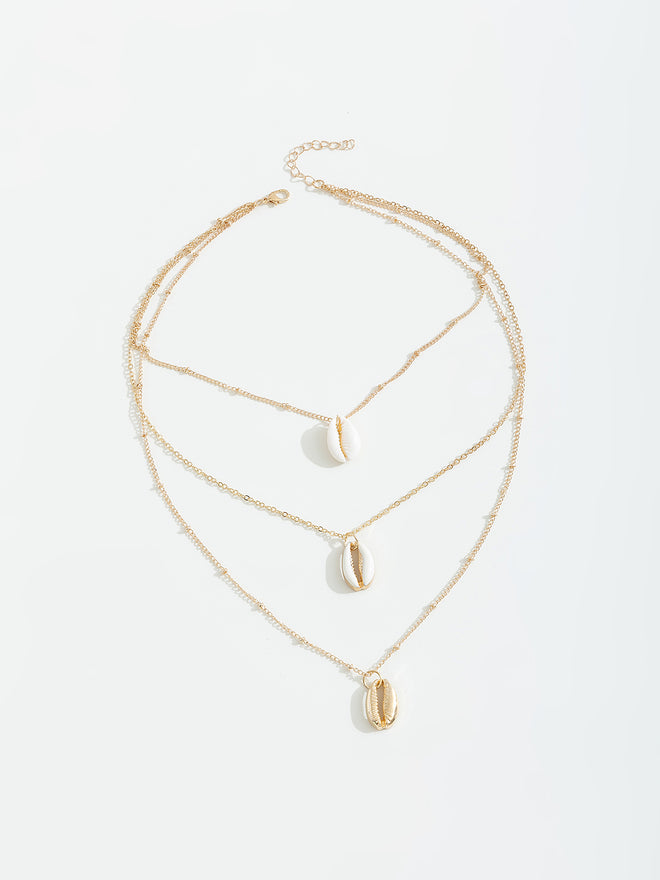 שרשרת המורכבת 3 שרשראות בשילוב תליון בצורת קונכיה.