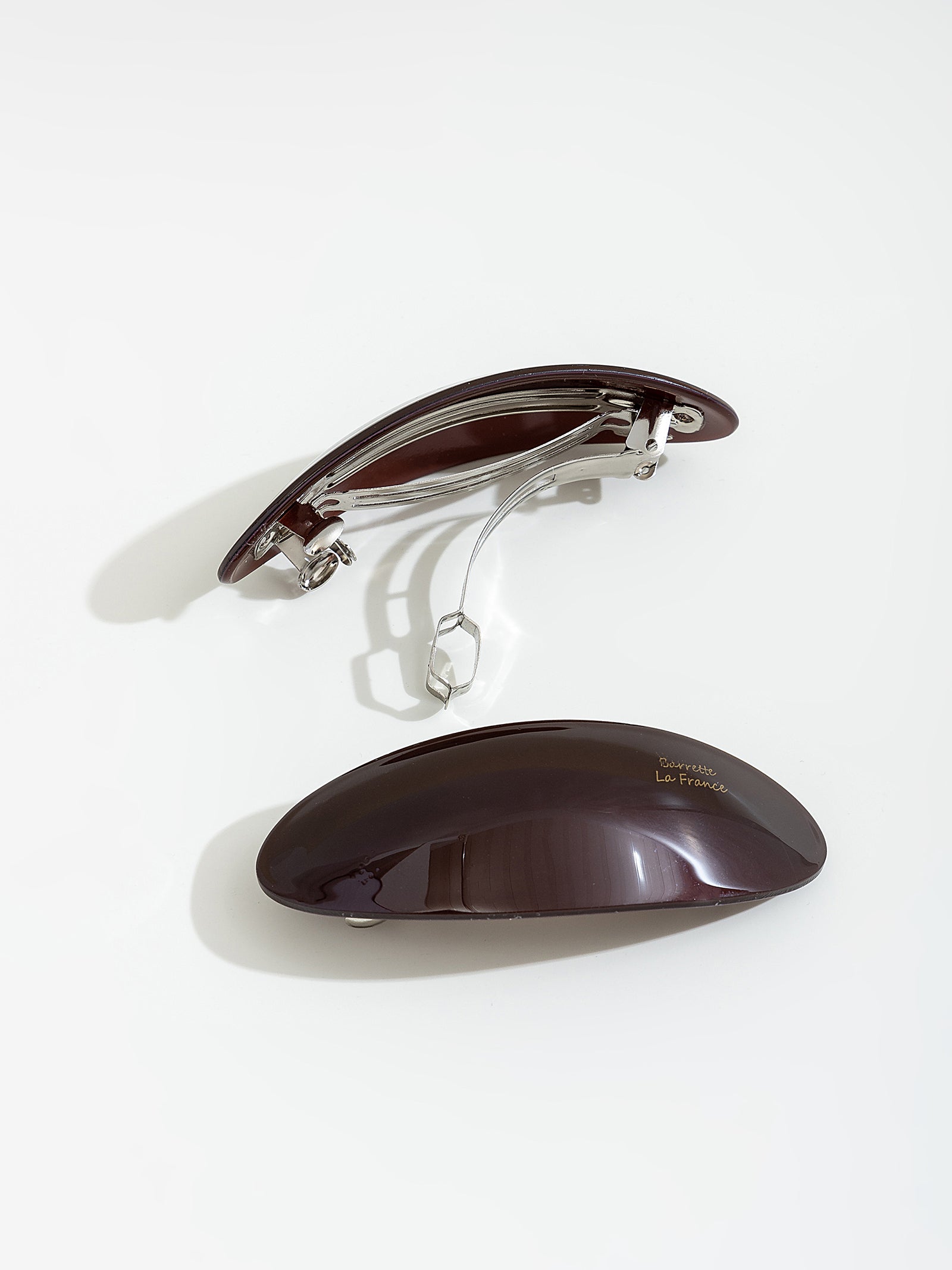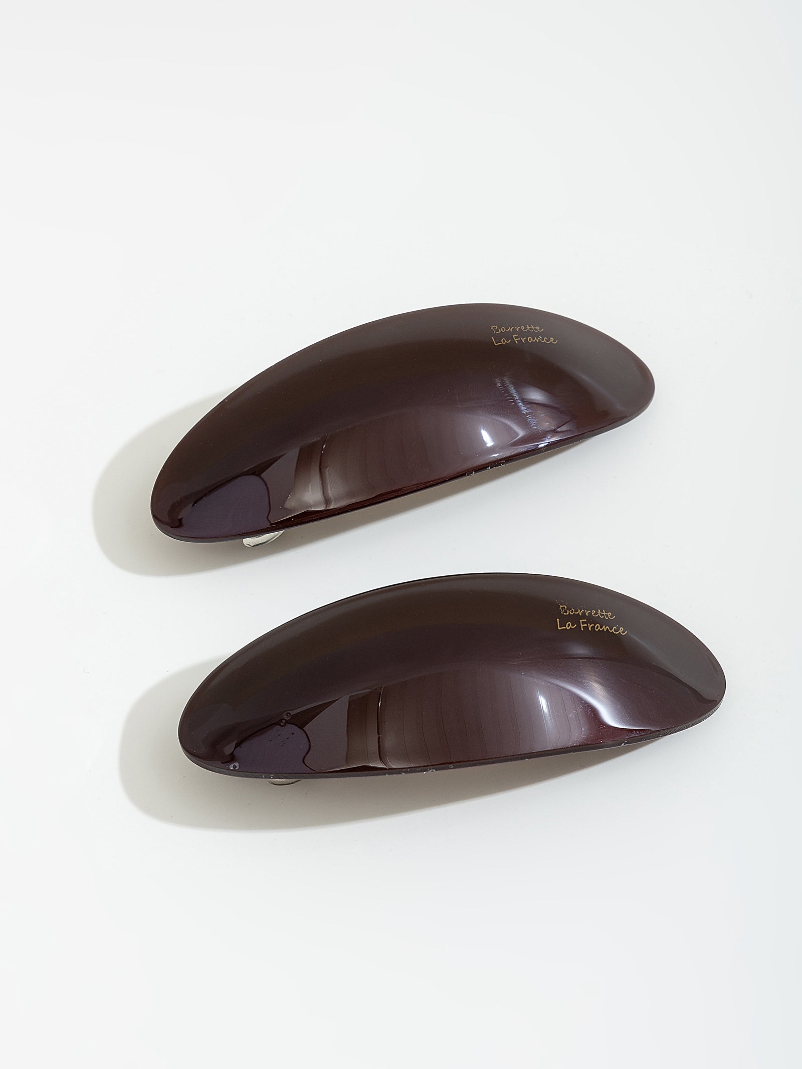 זוג קליפסים לשיער בצורת אליפסה.