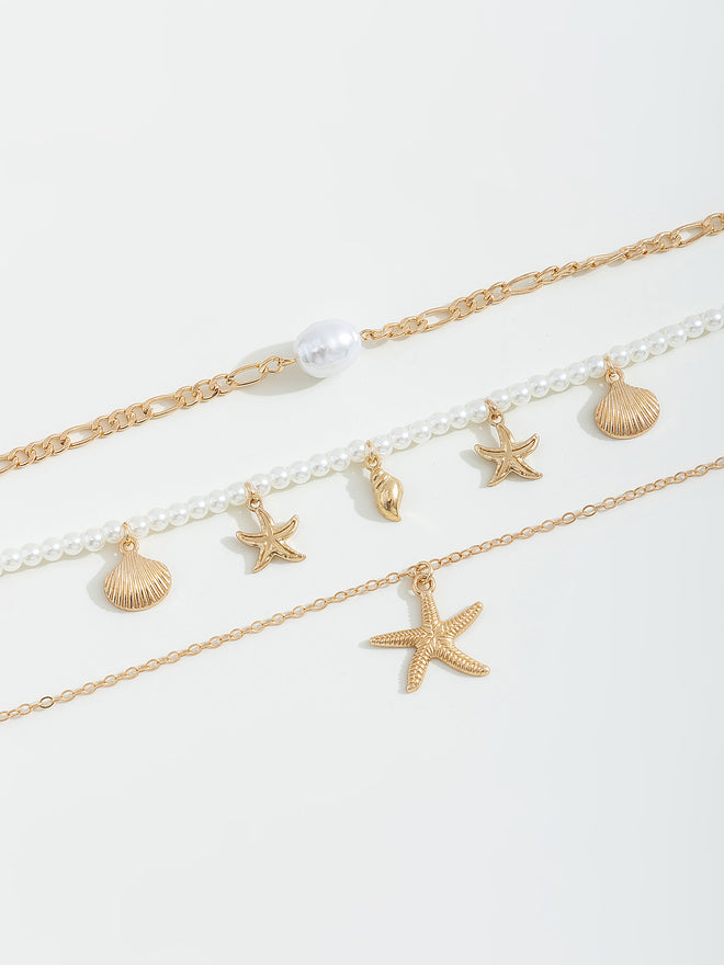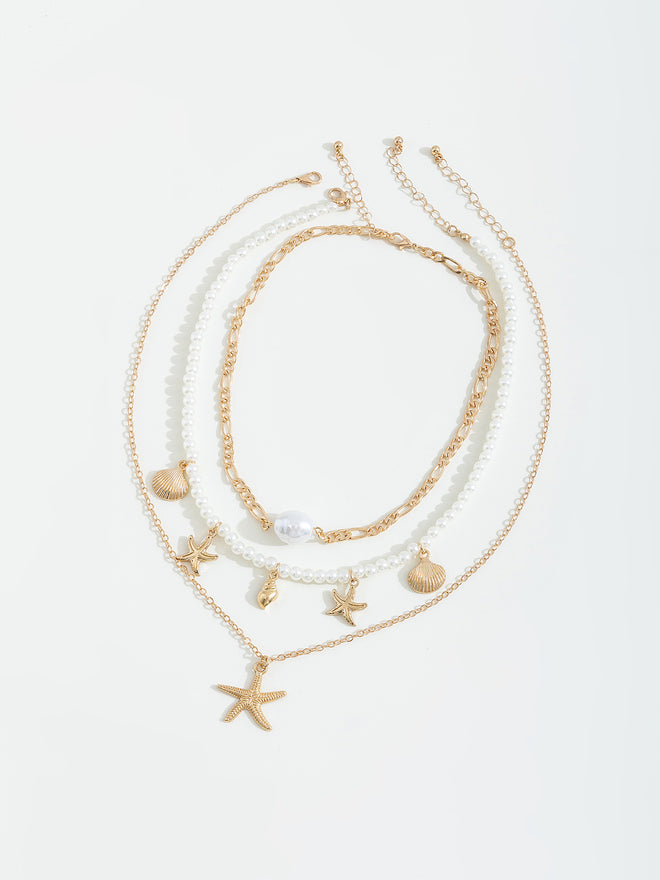 סט של 3 שרשראות בעיצוב ימי בשילוב תליונים בצורת כוכבי ים.