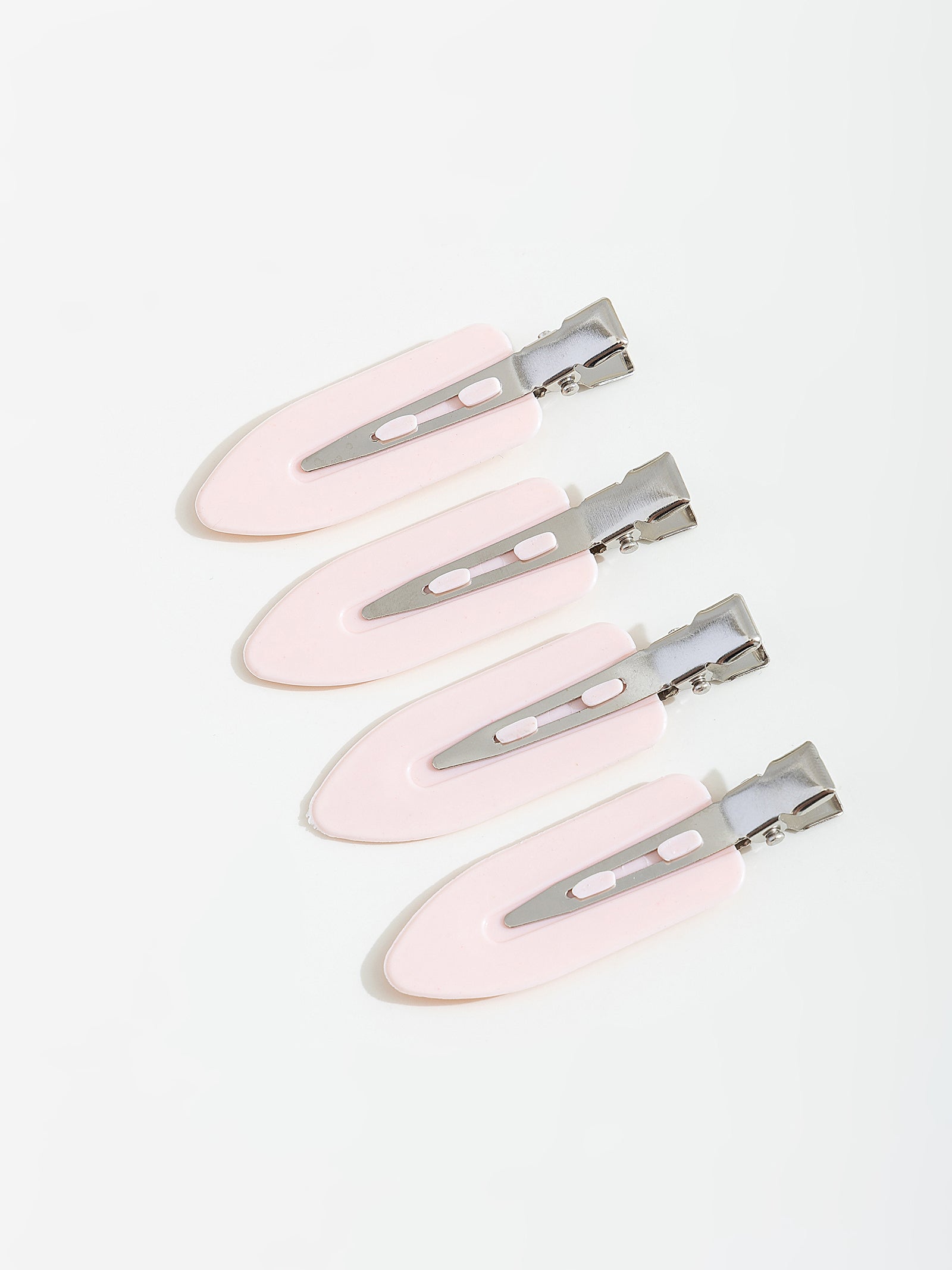מארז של 4 סיכות לשיער לאיפור בצבע ורוד.