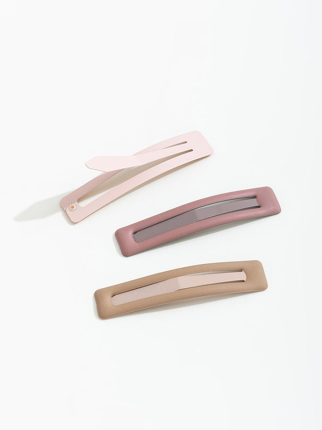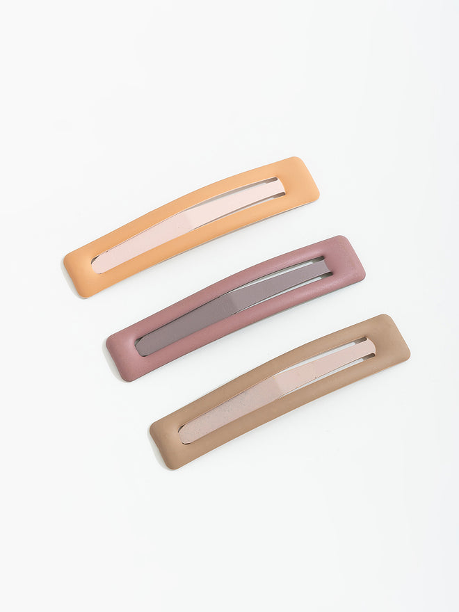 שלישיית סיכות מלבן לשיער בצבעים שונים.