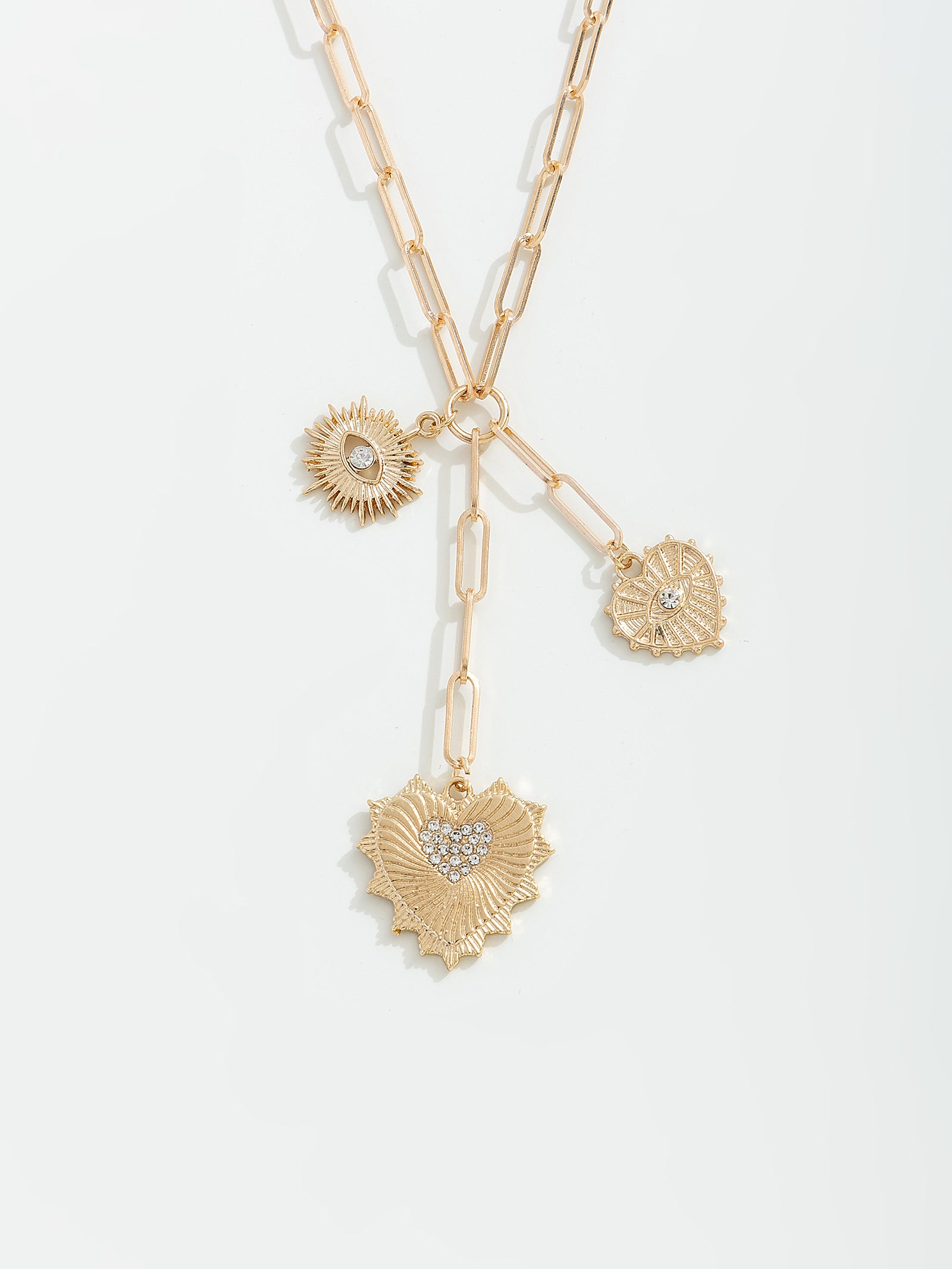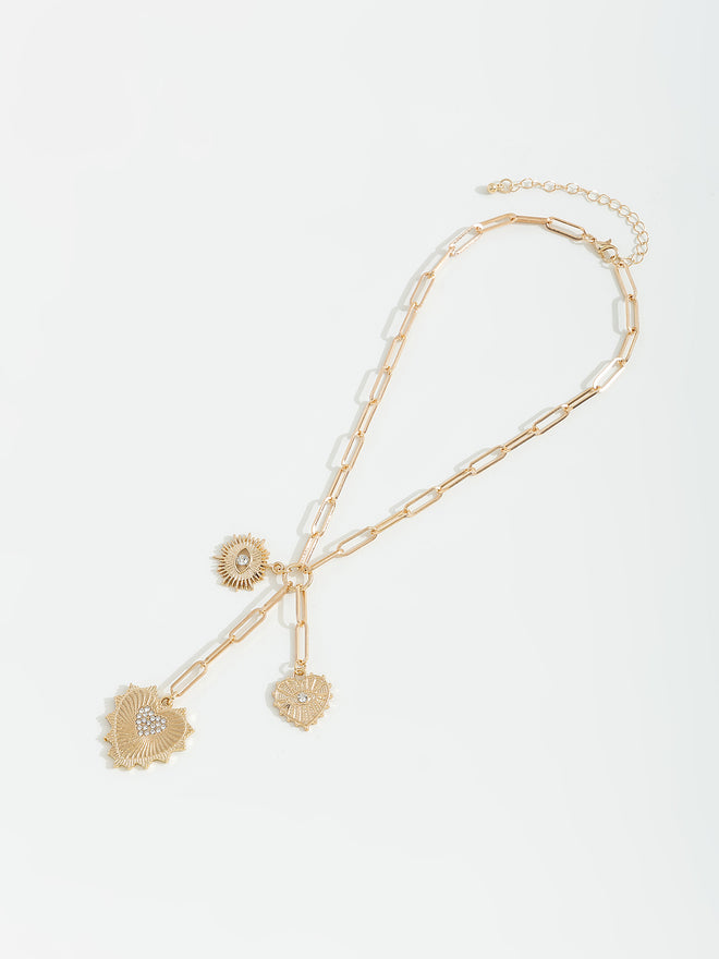שרשרת גורמט עדין בשילוב תליון בצורת לבבות עם שיבוץ.