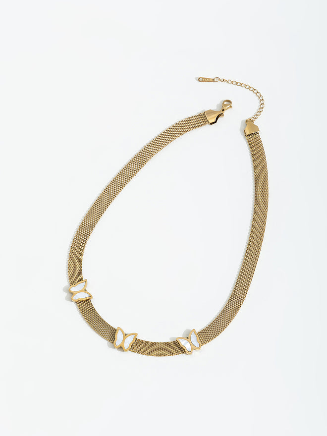 תליון-צ'וקר בשילוב שלושה תליונים בצורת פרפרים.