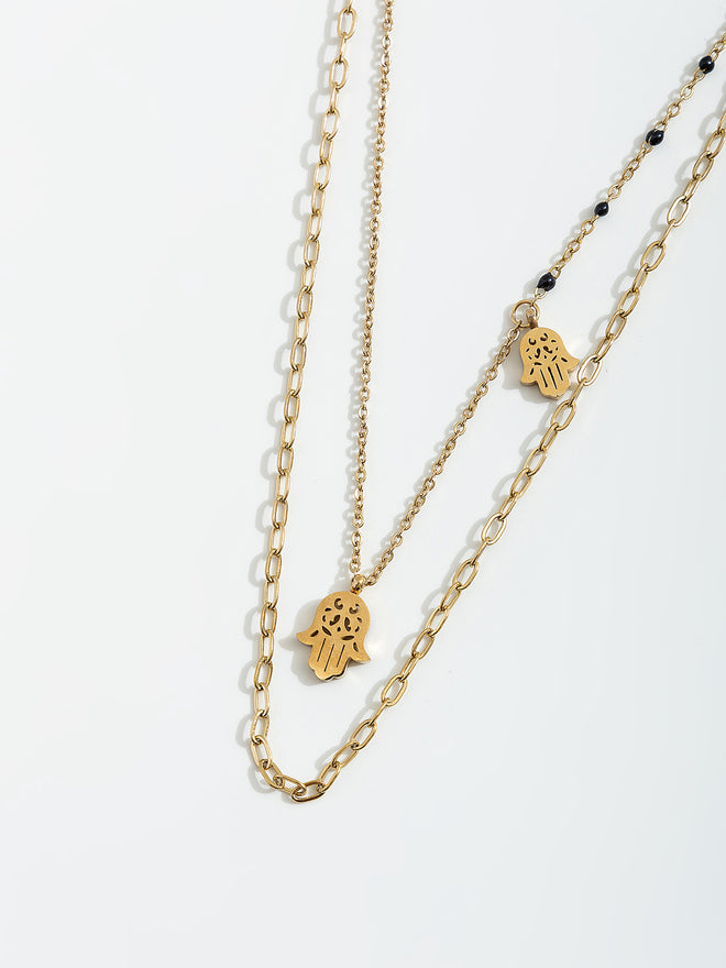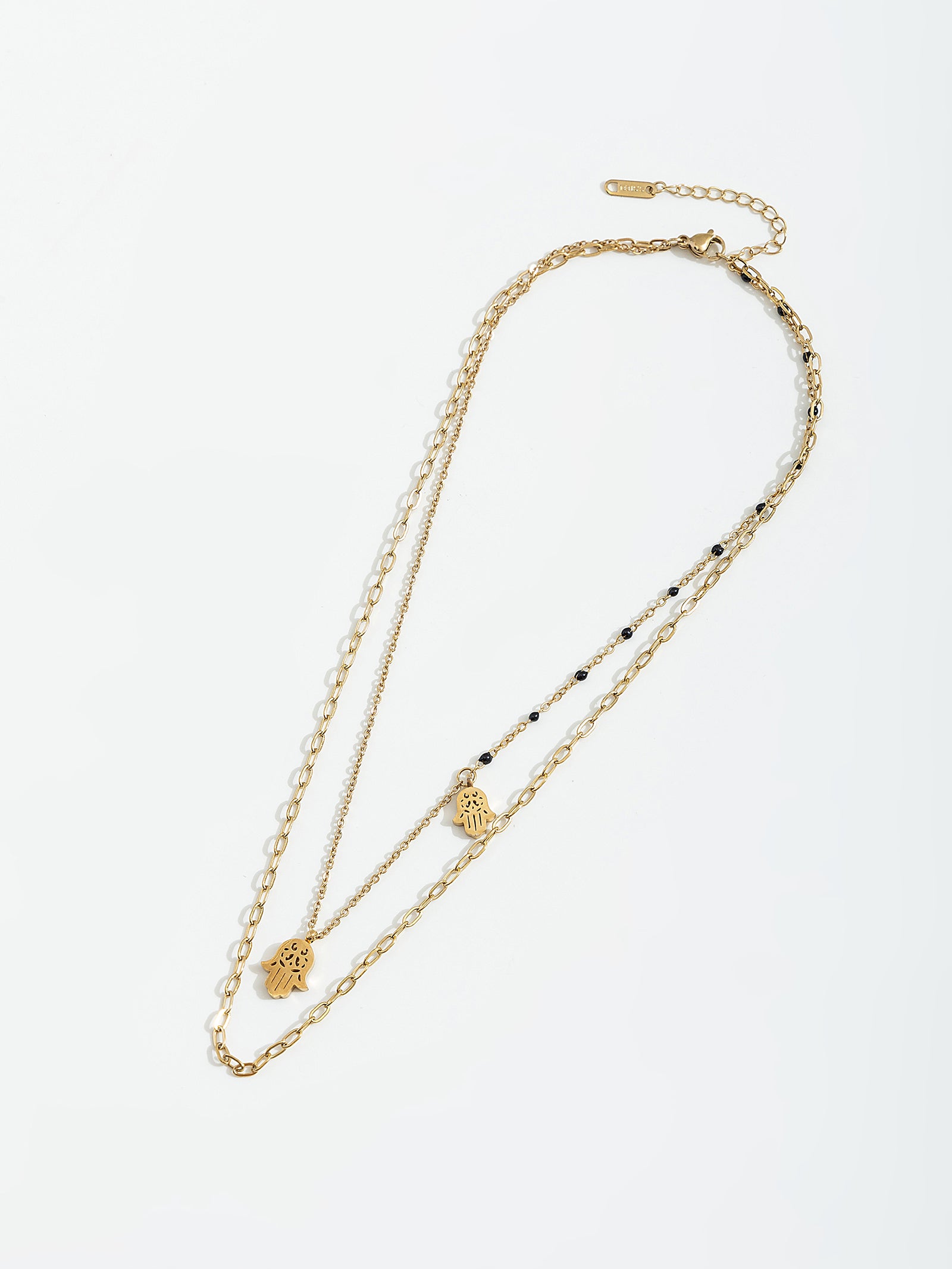 שרשרת כפולה בשילוב תליונים בצורת חמסה.