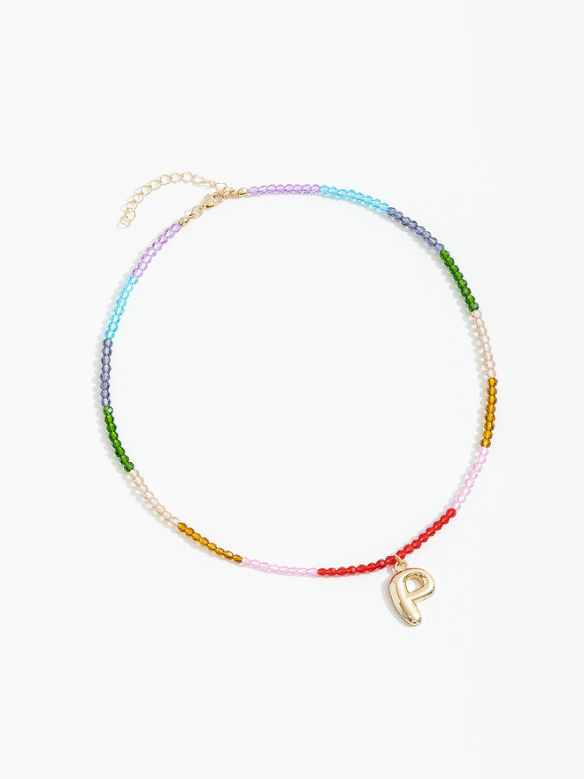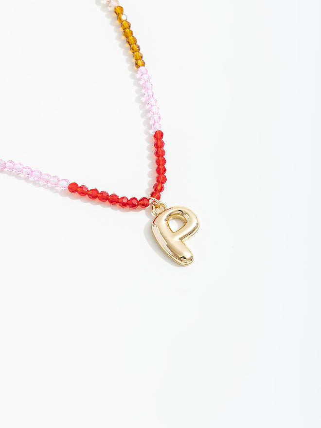 שרשרת מחרוזים צבעוניים בשילוב תליון בצורת האות P.