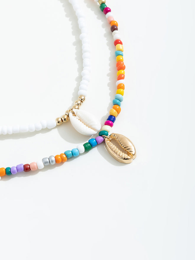סט של 2 שרשראות מחרוזים בשילוב תליון בצורת קונכיה.