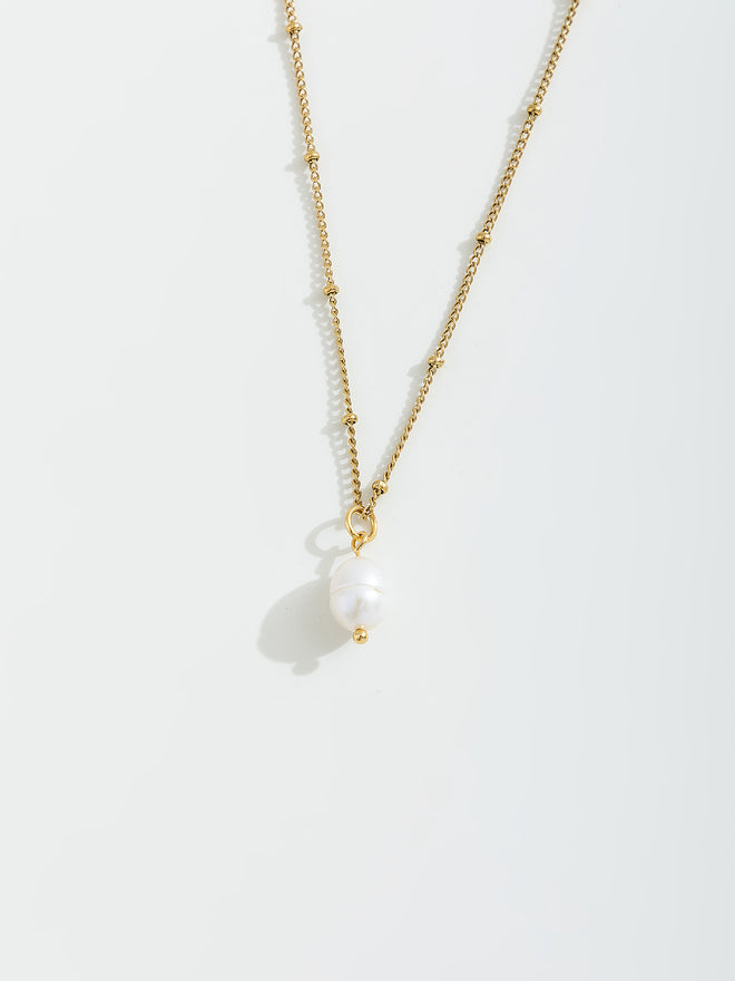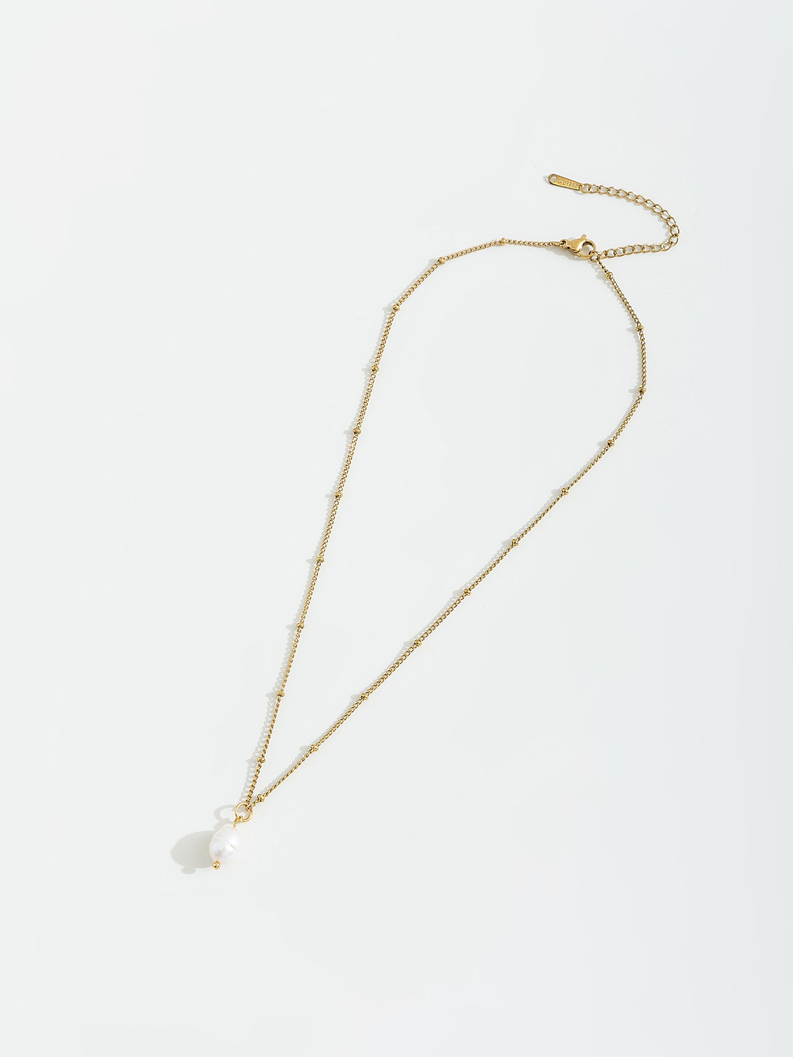 שרשרת בשילוב תליון עם חרוז גדול בצורת פנינה.