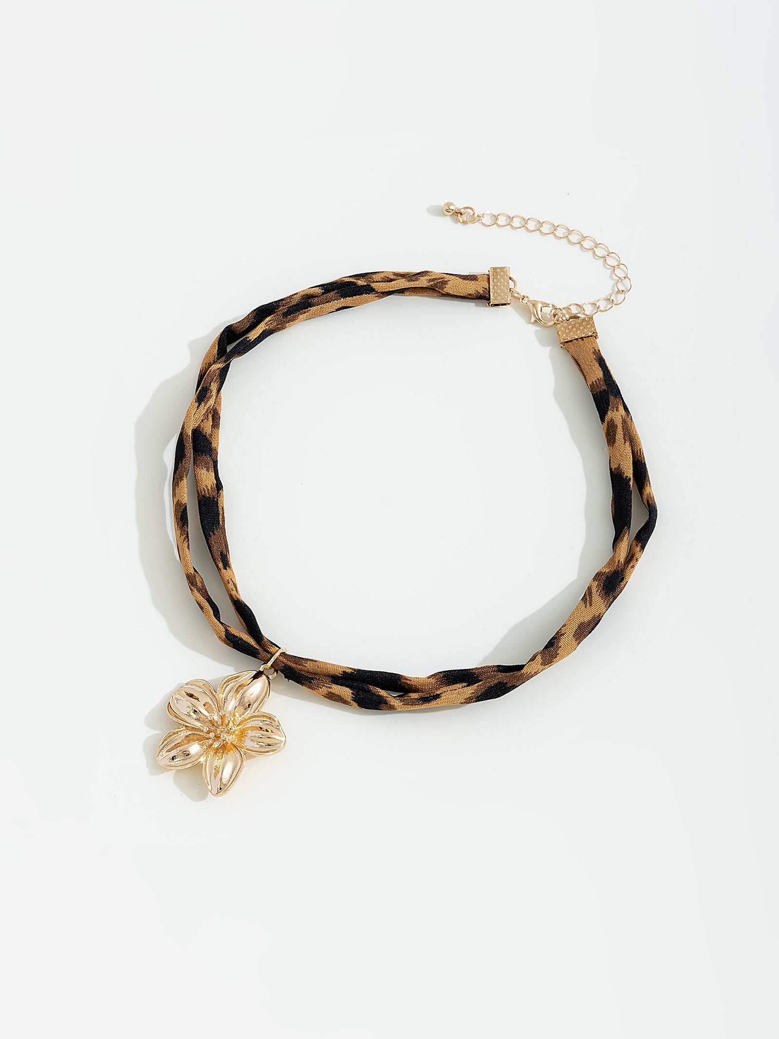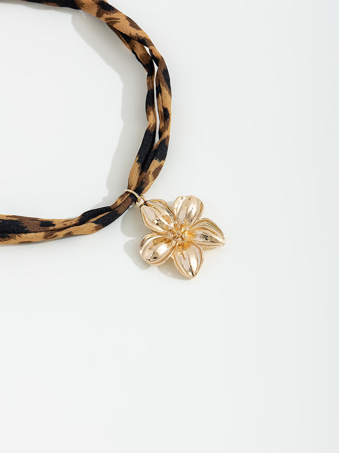 שרשרת עם תליון בצורת פרח בשילוב רצועה צבעונית.