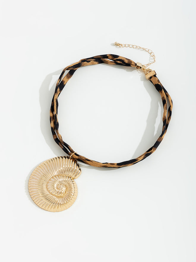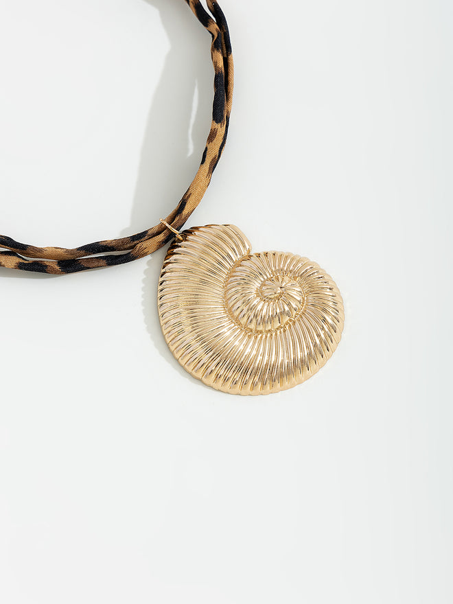 שרשרת עם תליון בצורת צדף בשילוב רצועה צבעונית.