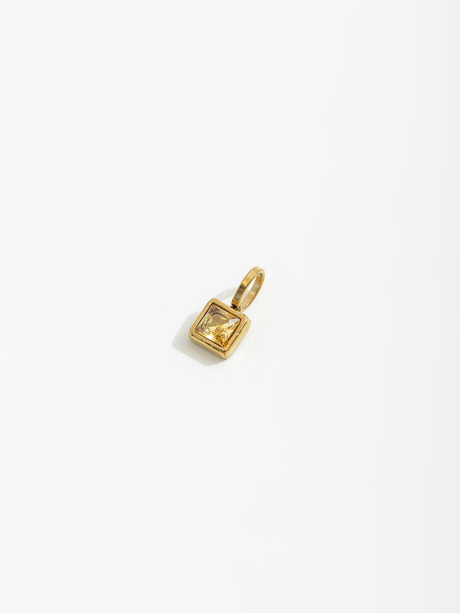 תליון מרובע משובץ בשילוב אבן צהובה.