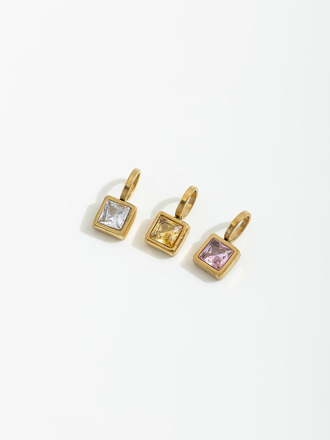 תליון מרובע משובץ בשילוב אבן שקופה.
