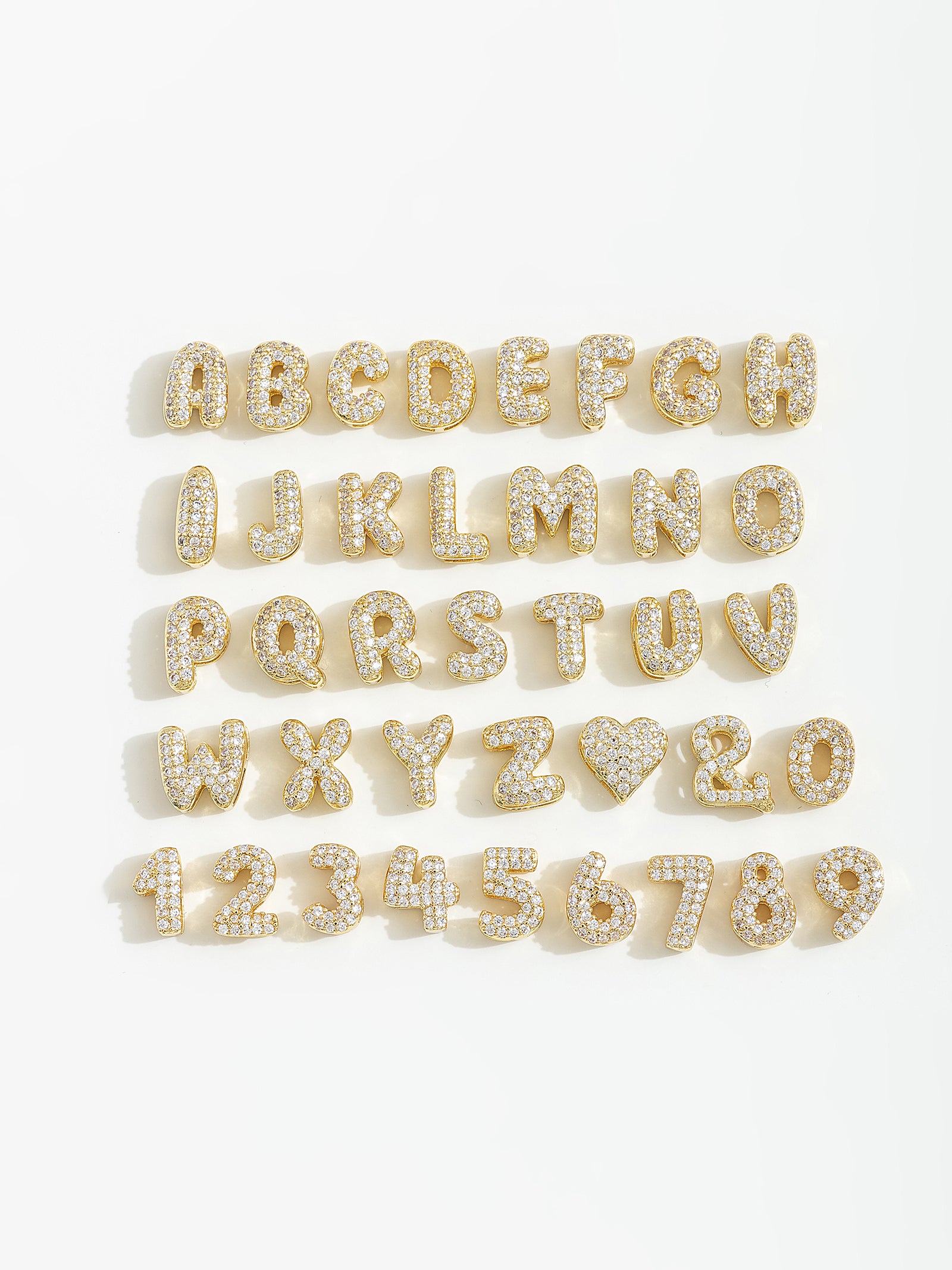 תליון משובץ בצורת אות לטינית וספרות לבחירה.
