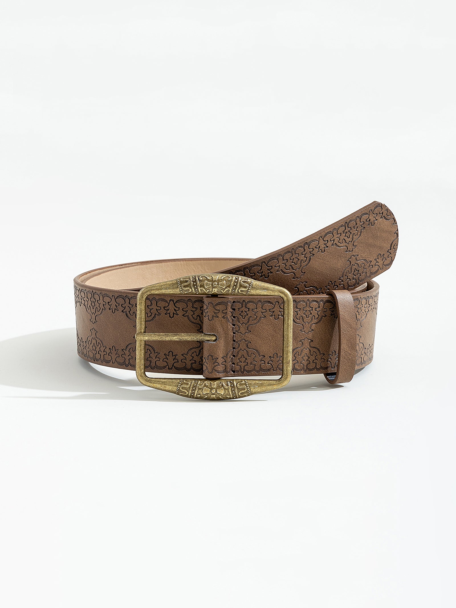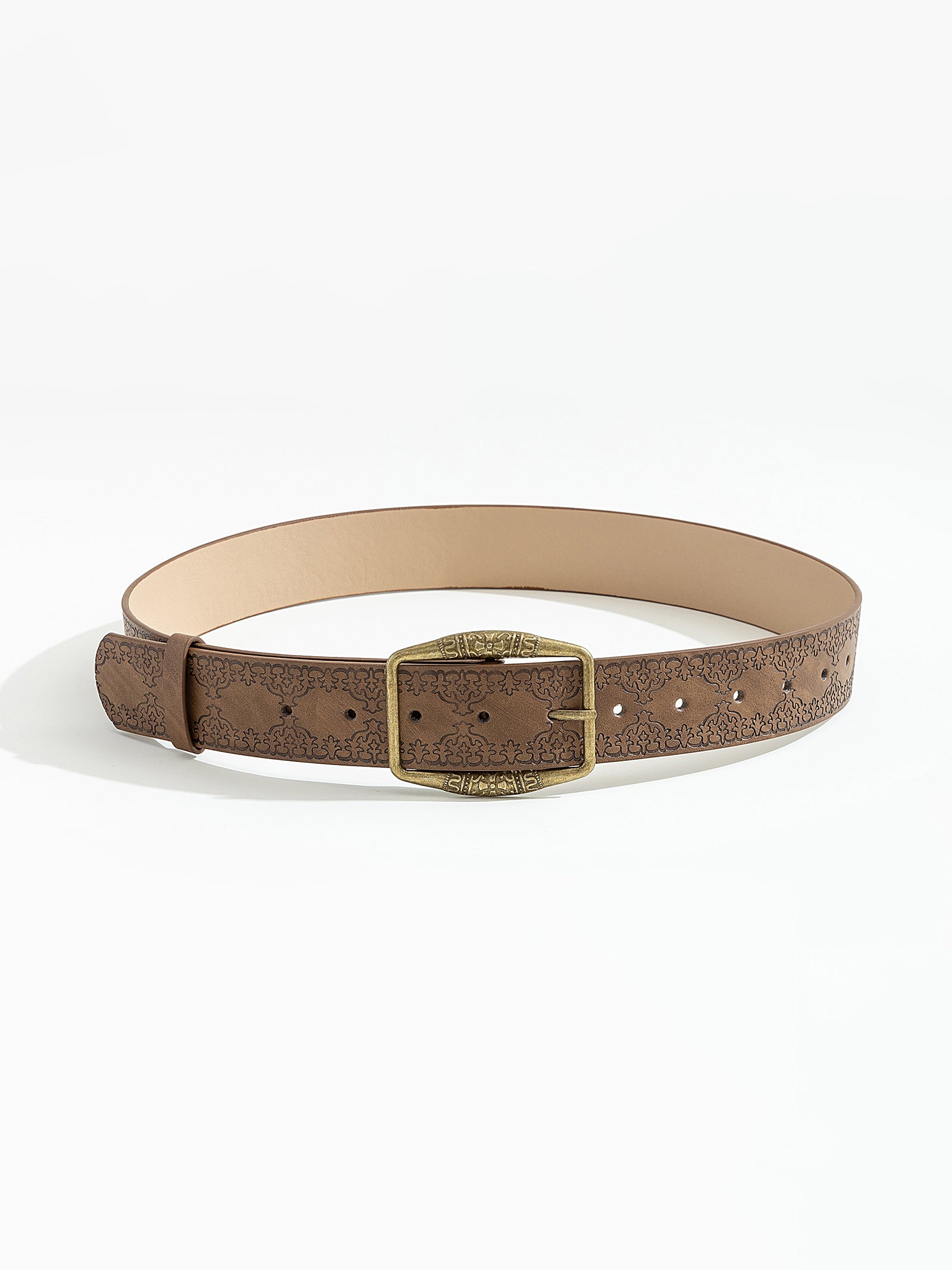 חגורת דמוי עור עם עיטורים ואבזם ניקל מלבני מתאים למידות XS-M