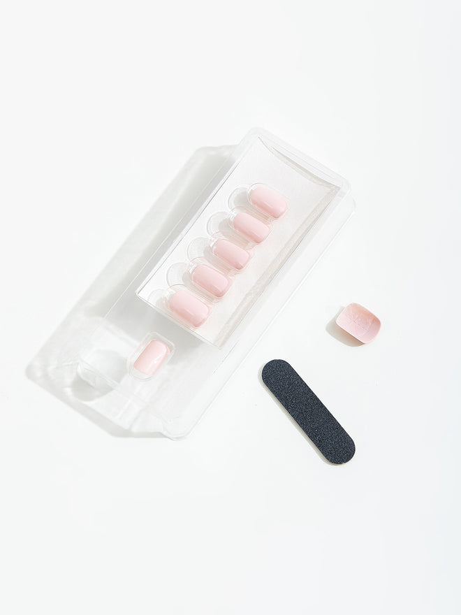 מדבקות לציפורניים בצבע ניוד מגיעות עם מקל ומשייף להתאמה מושלמת