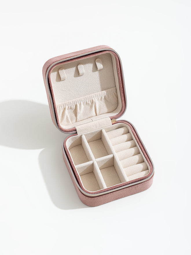 קופסת תכשיטים מקטיפה סגירת רוכסן עם מקום לטבעות צמידים ושרשראות